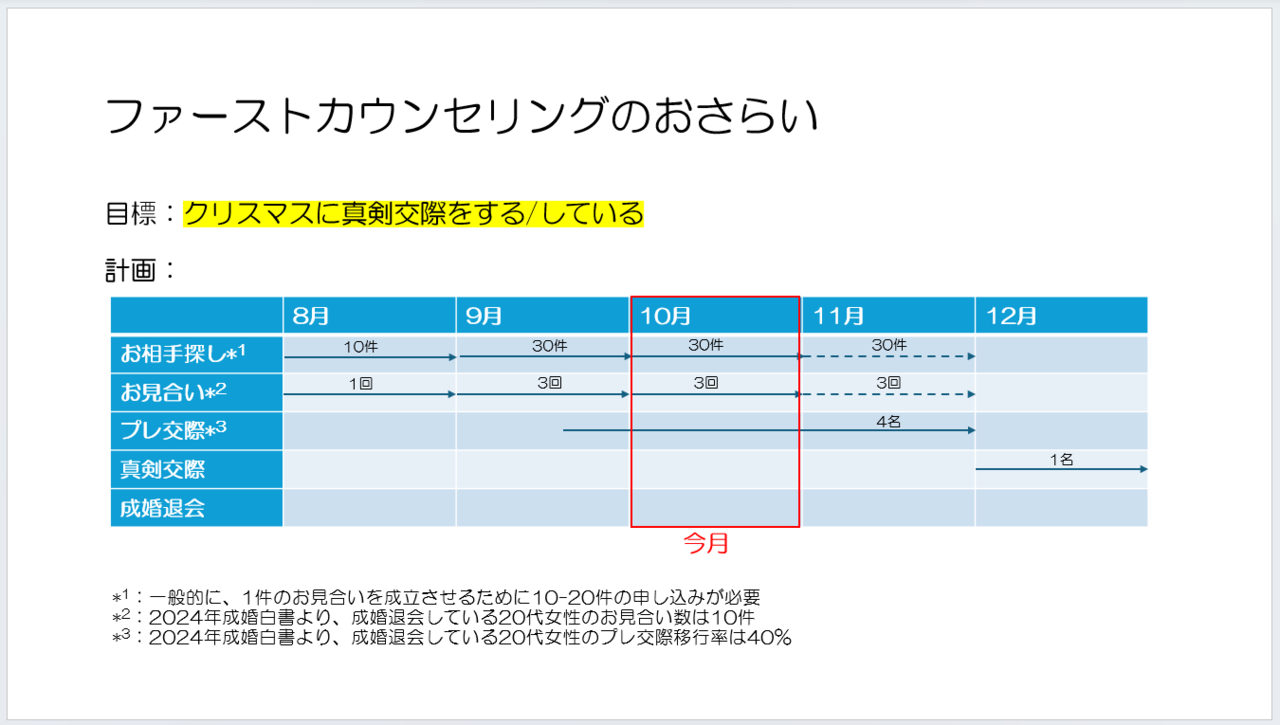 そこから成婚に向けた具体的なスケジュールをご提案します。